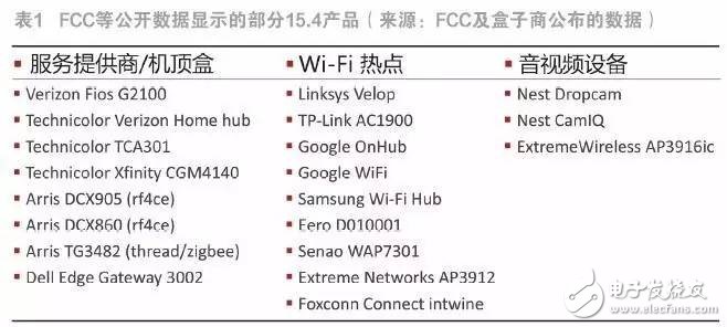 首先來看不同廠商的盒子。從過去6個(gè)月(2016年12月到2017年5月)美國(guó)聯(lián)邦通信委員會(huì)(FCC)對(duì)接入設(shè)備進(jìn)行公告的信息,以及盒子廠商注冊(cè)時(shí)的產(chǎn)品信息可列出表1。