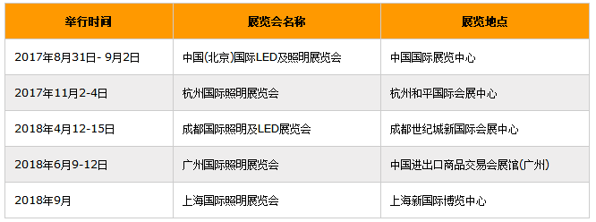 6、2017-2018內(nèi)地部分燈具燈飾展覽會: