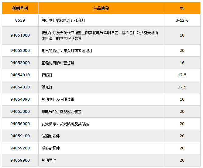 1、2017年照明電器進口關(guān)稅沒有變化,其摘要如下: