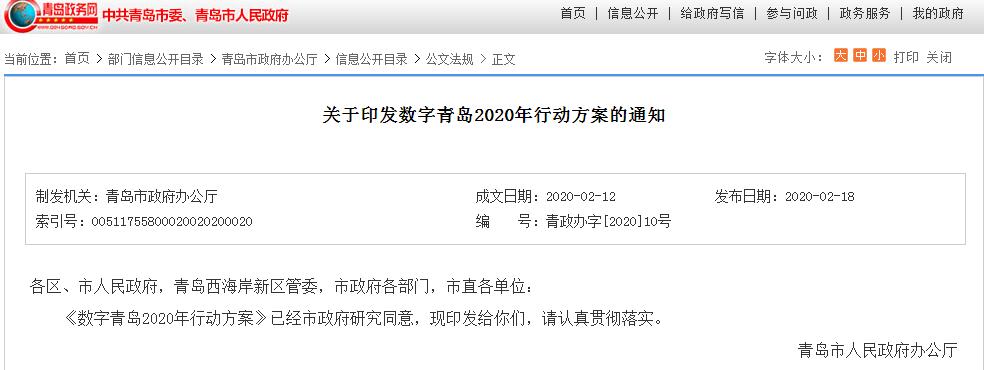 《數(shù)字青島2020年行動方案》明確五項內(nèi)容:加快發(fā)展新一代數(shù)字設(shè)施;培植壯大數(shù)字經(jīng)濟新動能;打造政府?dāng)?shù)字治理新模式;提升民生服務(wù)數(shù)字新體驗;加強數(shù)字化轉(zhuǎn)型支撐保障。