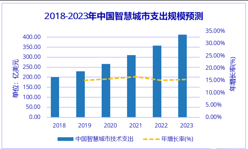 根據(jù)最新發(fā)布的《全球智慧城市支出指南》,國際數(shù)據(jù)公司IDC預(yù)測,至2020年,全球智慧城市市場相關(guān)支出規(guī)模將達到1240億美元,較2019年增長18.9%,其中中國市場支出規(guī)模將達到266億美元(約1843億人民幣),位列全球第二,智慧城市建設(shè)潛力一覽無余。