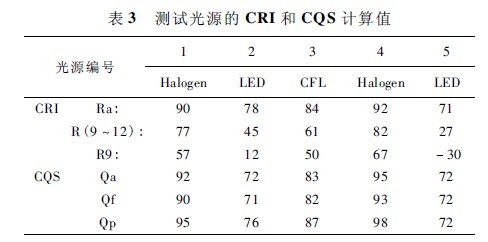 3. 3 視覺實(shí)驗(yàn)與CRI、CQS 計(jì)算值的比較