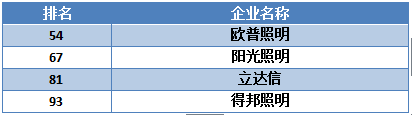 照明行業(yè)有十家企業(yè)上榜