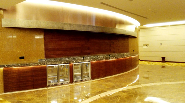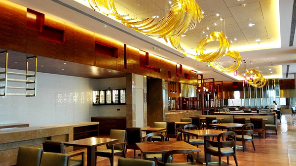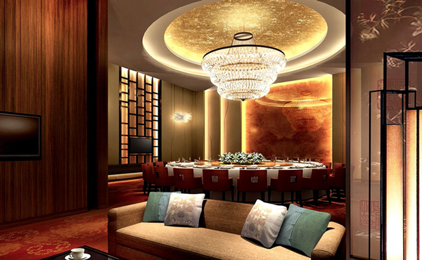 酒店的餐廳、酒廊是客人進餐、宴請的地方,燈光配置需要低色溫(2500-3000K)、高顯色(>85),照度(200lx),這樣能夠突出菜肴鮮美,吊起客人的胃口,讓客人心情愉悅地進餐。