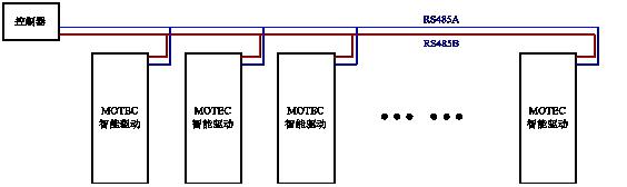 以下是MOTEC智能驅(qū)動器通過RS485網(wǎng)絡(luò)控制的一種拓撲圖。