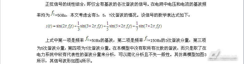 根據(jù)實際電網(wǎng)中的諧波情況和仿真分析的需要,本文構(gòu)建出以下兩種信號模型。實際電網(wǎng)中由于既存在線性負荷也存在非線性的負荷,所以實際情況下電網(wǎng)中的諧波既包含穩(wěn)定的基波的各次諧波分量也包含一些非穩(wěn)定的瞬態(tài)變化的諧波,各種電網(wǎng)噪聲干擾等。為了仿真分析的方便起見,本文選取有代表性的僅含一種諧波情況的諧波信號進行分析。