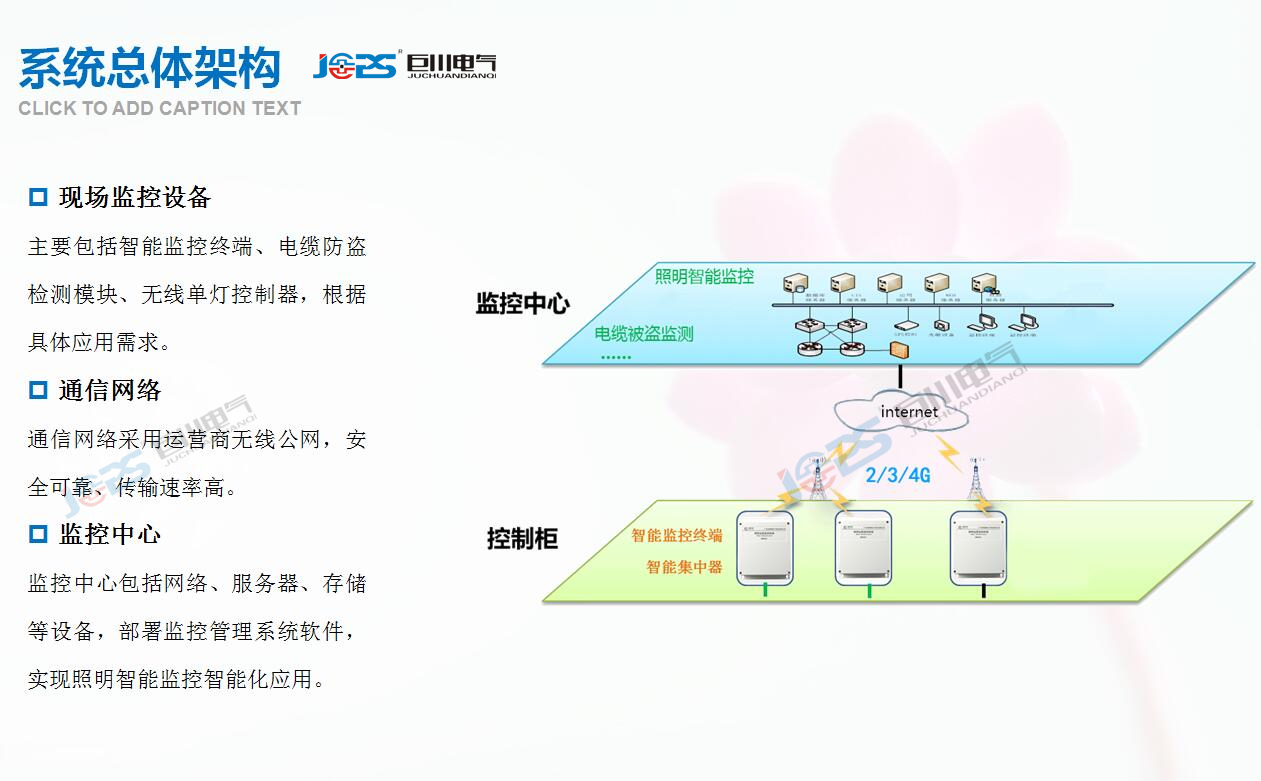 浙江巨川電氣科技有限公司基于城市路燈、景觀控制的智能照明監(jiān)控管理系統(tǒng),推動城市管理網(wǎng)絡(luò)化,智能化,節(jié)能化,智慧城市解決方案!