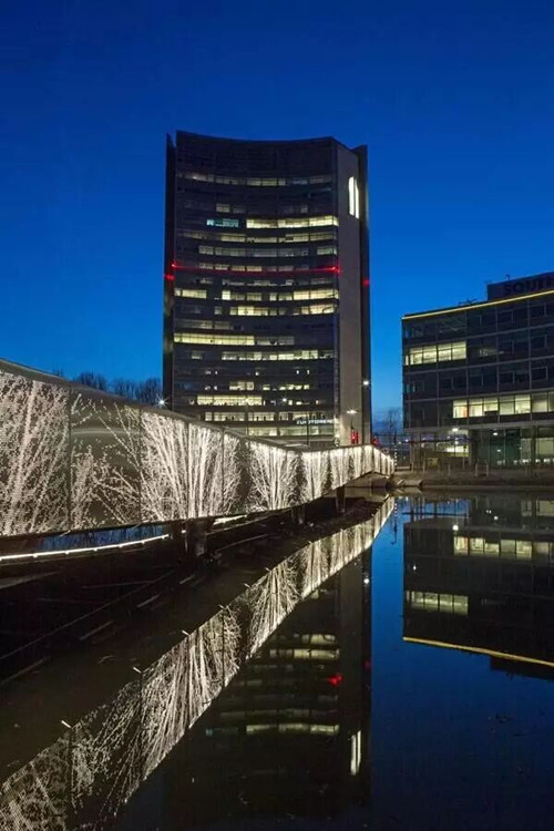 這個荷蘭人行橋獲得2015年LAMP照明設(shè)計解決方案獎。燈光使該項目非常奇特,怎樣形成的呢?不銹鋼欄桿上的穿孔。白天的時候,這些小孔不明顯,但當(dāng)晚上來臨時,后面裝置的LED燈會將其照亮,形成樹枝狀,受當(dāng)?shù)貤顦涞膯l(fā)設(shè)計。這些燈光不僅僅是裝飾品,還抹去了燈柱的需求。在這里,燈光不僅增添了額外的功能,還具美觀效果。