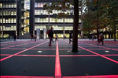 如今,芬斯伯里大道廣場已成為一個繁忙、大受歡迎的空間——但是在2001年修復(fù)之前,該廣場黑暗且不友好,并未得到充分利用。該重建項目的特色是嵌在地面上的燈光矩陣,將嵌有LED燈的毛玻璃條設(shè)成網(wǎng)格,迎合該廣場長凳的設(shè)計。該空間共有10萬多個LED燈照明,圖案不斷變化,展示了照明設(shè)計是如何提升一個空間規(guī)格的。