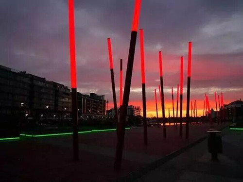 悉尼Aspire lighting 項目是一個發(fā)光的樹林,由高密度聚乙烯、鋼鐵和LED燈構(gòu)成。悉尼市政府委托藝術(shù)家Warren Langley煥發(fā)一個高速公路地下通道的生機,而這些樹木達到了這一目的,并用于支撐上面的道路。這個公共藝術(shù)裝置代指一項社區(qū)活動,保護當(dāng)?shù)匾淮輾У慕ㄖ?。這個裝置在陽光下很強烈,但卻擴大了它們的影響,使人們走在地下通道更加安全和更具吸引力,確保遠距離也能看到這個藝術(shù)作品。