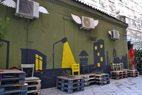 Perikleous街公共干預(yù)只在2014年1月的某天完成,在Atenistas事務(wù)所、當(dāng)?shù)仄髽I(yè)主、居民和公共照明部門規(guī)劃3個星期后,獲得40位志愿者的幫助完成。雖然該城市的照明工程師在小巷安裝了新燈,志愿者還噴繪了一個有趣的城市夜景壁畫,描述燈柱和明亮的建筑。照明也可是廉價的,可利用有效方式使一個空間更加安全。
