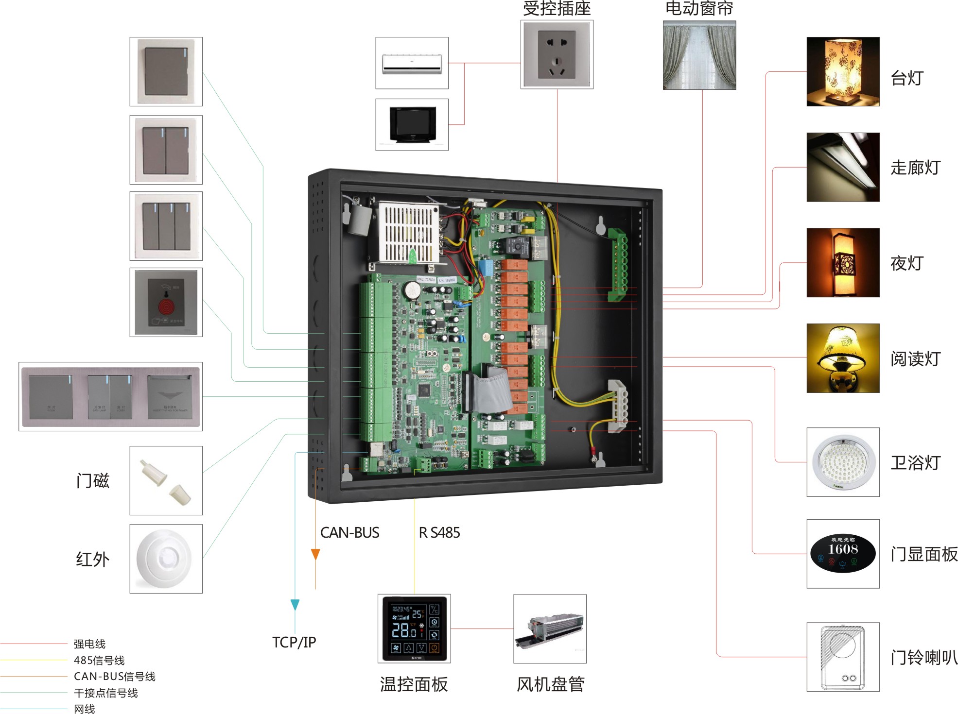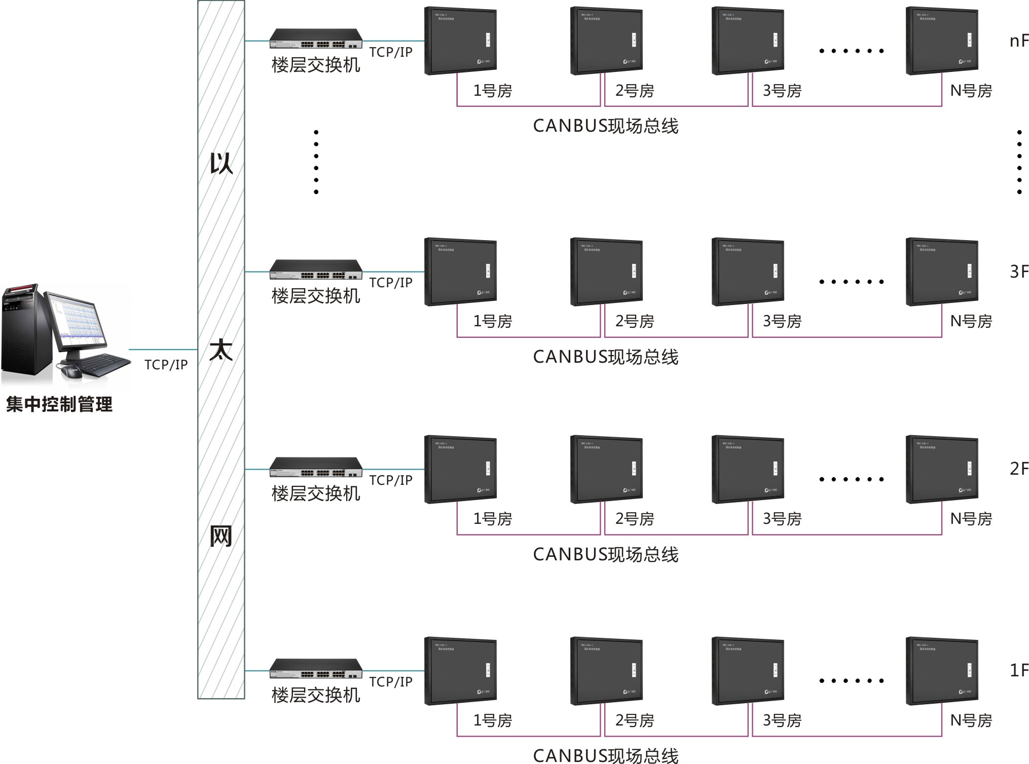 根據(jù)酒店客房規(guī)模及星級(jí)標(biāo)準(zhǔn)以及客房智能化控制的對(duì)象不同,可以使用模塊化控制器結(jié)構(gòu)、一體化集中控制器單元或者混合使用,滿足不同需求。